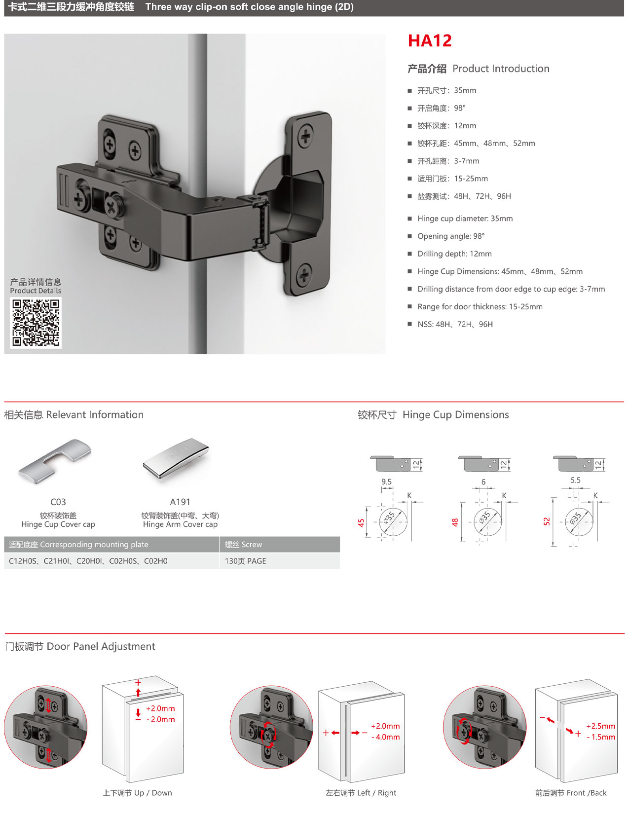 HA12 三段力特殊角度緩沖鉸鏈
